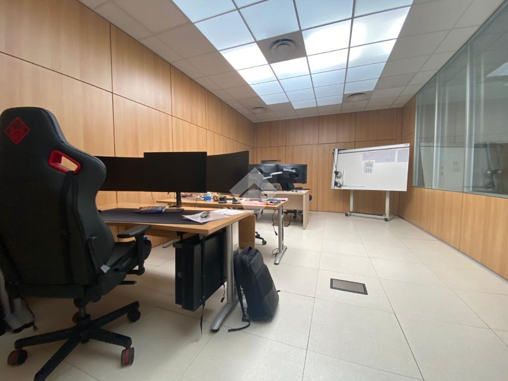 Dotato di ampie vetrate che garantiscono luminosità e ricambio d'aria, pareti divisorie attrezzate, doppi servizi igienici, riscaldamento e raffrescamento, controsoffitto, illumniazione a led e rete dati.